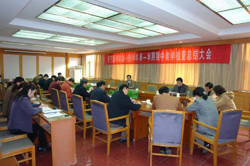 教务处处长马奎元首先对期中教学检查情况进行了全面细致的总结汇报,肯定了各学院在加强教学管理,确保正常教学秩序,强化教学质量监控,提高教学质量等方面做出的工作成绩,指出了检查中存在的问题,部署了下一步工作。高哲学副院长做了总结,他指出提高教学质量要有新思维、新举措、新气象,指出教学及教学管理要勇于打破旧的思想观念,及时把握现代高等教育的新形势,优化管理,深化改革保持积极向上的精神状态,加强学习,不断提高教学质量和管理水平。并对实验室日常管理和教风、学风建设提出了要求。