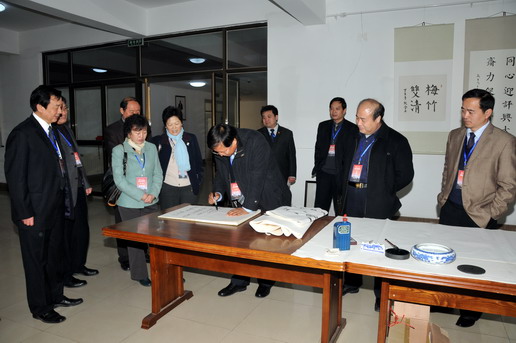 专家组成员观看学院师生书画展,王大文教授欣然题词