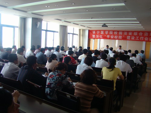 2009年6月8日下午,学校在济宁本部学术报告厅召开校园治安综合治理暨深化“平安校园”建设工作会议。党委书记武广华,党委副书记、院长白波,党委副书记姜继玉,副院长杨志寅、高哲学出席了会议。大会由温杭东主持,武广华做了重要讲话,白波与职能部门负责人分别签订了2009-2010年“校园治安综合治理暨‘平安校园’建设目标责任书”。全校科级以上干部、副高职称以上老师、教学管理人员,学生处、团委、保卫处全体工作人员及全体辅导员参加了会议。 武广华在讲话中指出,这次全校校园治安综合治理暨深化“平安校园”建设工作会议非常重要,是经党委研究决定召开的。会议的主要任务是深入贯彻落实上级关于安全稳定工作的有关文件精神,安排部署我院校园治安综合治理和“平安校园”建设工作,与各职能部门、教学单位签订建设目标责任书,扎实推进校园治安综合治理和“平安校园”建设工作。 武广华深刻分析了当前国内外政治形势和社会环境,并结合我校实际,阐明了进一步加强校园治安综合治理暨深化“平安校园”建设工作的重要性,指出了当前和今后一个时期,我校安全稳定工作总的指导思想和目标任务,并对下一步工作提出了明确要求。一是提高认识,增强做好安全稳定工作的紧迫感和责任感。今年是新中国成立60周年,西藏实行民主改革50周年,也是平息1989年政治风波20年、取缔打击“法轮功”邪教组织10年。10月份,第十一届全运会也将在我省举办,我市还承担着篮球比赛项目,可以说今年是大事和热点问题比较多的一年。在这种情况下,做好校园安全稳定尤为重要。二是突出重点,强化措施,全力做好安全稳定工作。根据学校《突发事件应急处置预案》要求,落实防盗窃、破坏和治安灾害等防范措施,力求做到人人内容熟悉,程序清楚。要主动工作,彻底排查不安全和不稳定因素,堵塞漏洞、消除隐患,加强工作的主动性和预见性,遇到敏感事件和敏感期,要预先做好引导、稳控工作,确保不出问题。要及时掌握学生思想动态,把握焦点问题、倾向性问题,针对师生反映和群众举报的治安乱点和安全隐患,做到“早发现、早报告、早控制、早化解”,努力把各种矛盾纠纷和事故苗头消灭在萌芽状态。进一步健全信息员队伍,完善组织,建立长期有效的防范机制,加强各部门沟通,营造群力群防的良好氛围。三是加强领导,营造氛围,确保安全稳定工作取得实效。校园治安综合治理和“平安校园”建设工作是造福师生的一项重要举措,是为师生办实事的一项民心工程,也是需要广大师生共同参与的一项重要工作。各部门、单位要高度重视,确保校园治安综合治理和“平安校园”建设工作取得实效。这次会上,学校与各部门、单位签责任书,基本内容都在责任书上。学校将严格落实责任制和责任追究制,凡是因思想不重视、措施不得力、工作不到位而引发重大事件的要坚决追究有关领导和责任人的责任。 温杭东在总结发言中就如何落实武书记讲话精神,做好下一步安全稳定工作作了部署:一是统一思想认识。要求各部门、单位要迅速组织全体干部职工,对这次会议精神进行专题学习讨论,深刻领会会议精神实质,把思想和行动统一到这次大会精神上来。要充分认识到开展“平安校园”建设是我校落实省委、省政府“平安山东”建设的重大举措,是确保高校社会稳定、促进学校协调发展的重要保障。二是明确目标任务。各部门、单位要按照武书记的讲话和白院长与其签订的目标责任书的要求,结合学校已下发的《关于进一步加强校园治安综合治理和深化平安校园建设活动的实施意见》等文件精神,尽快制定各自的工作预案和实施意见,明确工作重点、责任和任务,确定要解决的重点问题和矛盾方面。严格落实好安全目标责任制,抓好有效监督、责任落实、责任报告、责任调查、责任追究等,确保做到工作有重点,责任有追究,任务有落实。三是按照学校《平安校园长效工作机制建设检查指标》的通知要求,抓好落实,牢固树立科学发展、和谐发展和安全发展的观念,紧紧围绕创建“平安文明和谐”校园的目标,建立健全安全稳定工作的长效机制,为全体师生营造良好的学习、生活和工作环境,有力地促进学校的健康、可持续发展。为进一步维护和保持我校安全稳定工作的良好局面,扎实推进我校平安校园建设长效机制的深入贯彻、落实,要根据省委、省政府的有关部署要求和《省委高校工委、教育厅关于深入开展“平安校园”建设的意见》、《省委高校工委关于印发平安校园长效工作机制建设检查指标的通知》精神,切实做好下半年省高工委对我校深入开展“平安校园”建设情况的迎检工作。 6月9日,日照校区召开了校园治安综合治理暨深化“平安校园”建设工作会议,会议由党委副书记刘学景主持,副院长温杭东向科以上干部、副高职称以上教学及管理人员、学生处、团委、保卫处全体工作人员和全体辅导员传达了会议精神,并与各二级学院、系、部签订了责任书。