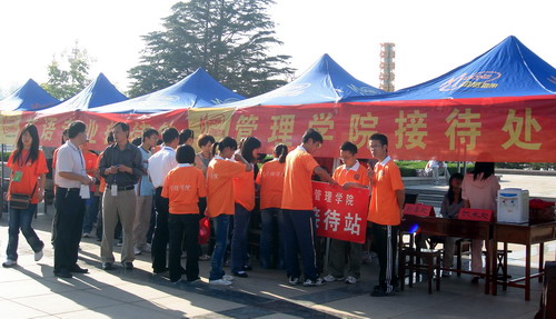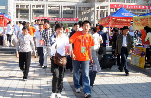2009910上午9点,我校2009届学生的迎新工作正式拉开序幕,学院党委副书记、院长白波,党委副书记刘学景,副院长高哲学,在有关职能部门负责人和各教学单位党总支书记陪同下走访了各接待站点,慰问辛苦工作在一线的工作人员和志愿者。
