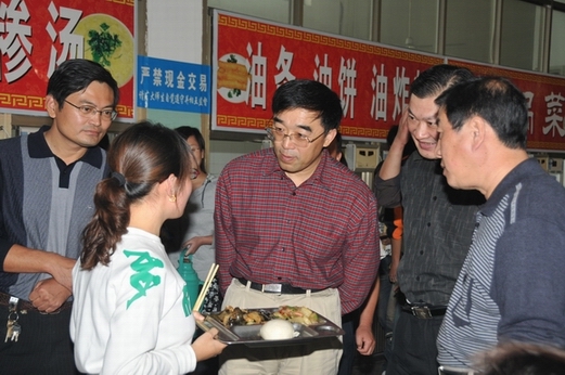 在学生餐厅,白波、温杭东认真听取了后勤管理处饮食管理科简要的工作汇报,实地查看了餐厅和操作间的卫生状况、饭菜的花色品种,检查了学生的就餐环境,并与就餐学生进行交谈,了解学生对餐厅工作的意见和建议。白波对后勤管理处在餐厅管理方面所做的工作给予了充分肯定,并对进一步做好学生餐厅工作提出了意见。