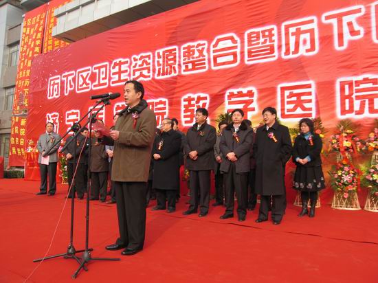 我校副院长高哲学,中华医学会机关党委副书记吴玉普,历下区区长雷天太,济南市卫生局副局长马继任等领导出席了挂牌仪式并分别讲话。教务处副处长、实践教学部主任刘永春,历下区人民医院院长杨彩云及医院领导班子、医护人员,济南市部分医院和单位领导参加了仪式。