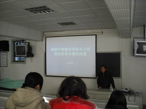 为了进一步活跃我校的科研氛围,提升科研水平,学习先进的科学实验方法和技术,科研处特邀请北京大学医学部细胞培养专家由江峰高级实验师来我校传授细胞培养技术,并于1月4日上午在护理楼402教室做了相关讲座。讲座分为两个专题:《科研中细胞培养技术与使用时经常出现的问题》和《细胞爬片免疫组织化学染色时应注意的一些问题》。由老师从事细胞培养及相关实验研究工作30余年,积累了丰富的实验经验,所传授的流式细胞检测、FISH等先进的病理学检测方法有很强的实用性和操作性,必将促进我校细胞培养技术的进一步提高。