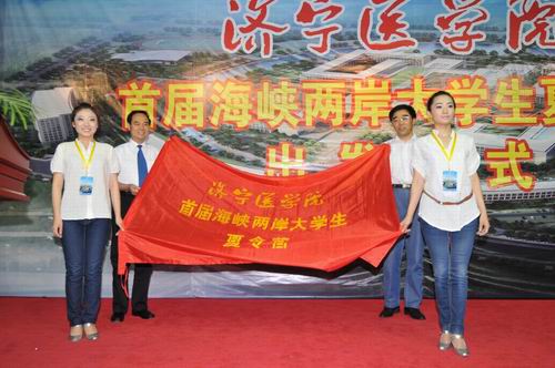 为促进学校和台湾医学教育的交流与合作,应台湾“中华医疗科学及技术促进交流会”邀请,我校组派以党委副书记刘学景为团长、副院长杨志寅为副团长的“首届海峡两岸大学生夏令营”一行21人,将于6月16日赴台湾进行为期一周的访问和学术交流。6月15日,学校隆重举行了首届海峡两岸大学生夏令营出发仪式。济宁市台办副主任袁汉荣及市委宣传部、共青团市委等部门的领导,媒体界的朋友们,学校领导武广华、白波、姜继玉、刘学景、杨志寅、高哲学、温杭东,夏令营营员,学校有关部门单位科级以上干部和全体学生辅导员参加了出发仪式。出发仪式特邀中央电视台著名新闻主播