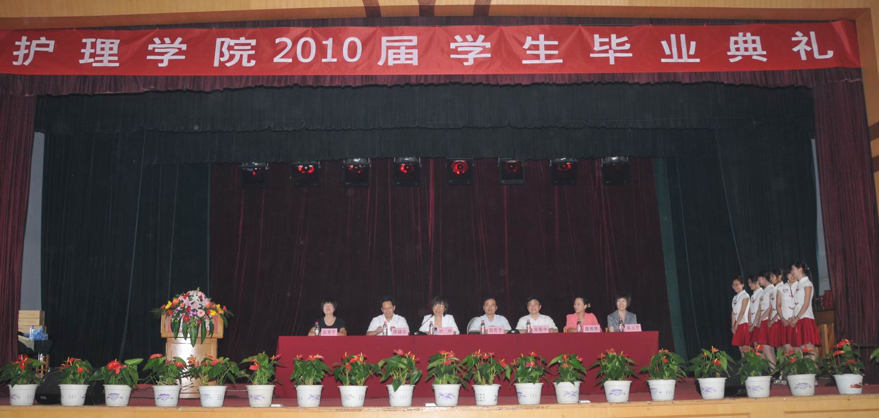 典礼由护理学院院长班博主持,护理学院党总支书记张振中、党总支副书记陈玉芹、副院长张秀平、学生处副处长陈晓东、团委书记曲相艳及护理学院2010届毕业生447人参加了典礼。