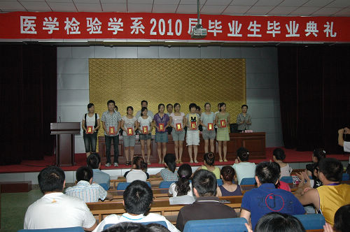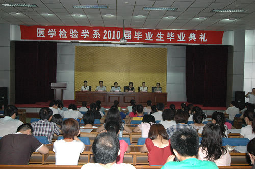 7月2日上午,医学检验学系在学术报告厅隆重举行2010届毕业生毕业典礼,副院长高哲学出席典礼并讲话。团委书记曲相艳,学生处副处长陈晓东,医学检验学系主任杜召云、党总支副书记于国华、系副主任郑红、全体辅导员及医学检验学系2010届毕业生148人参加了典礼。