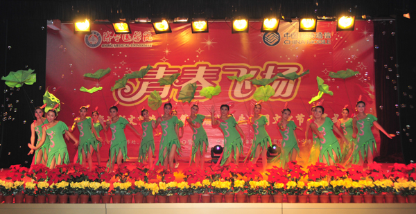 这是一台以青春为主题的晚会。舞蹈《舞动青春》、《如火的青春》,健美操《青春旋律》,武术表演《中国功夫》,展现了我校大学生富有活力、健康向上的青春风采和热爱集体、热爱生活、热爱美好事物的优秀品格。