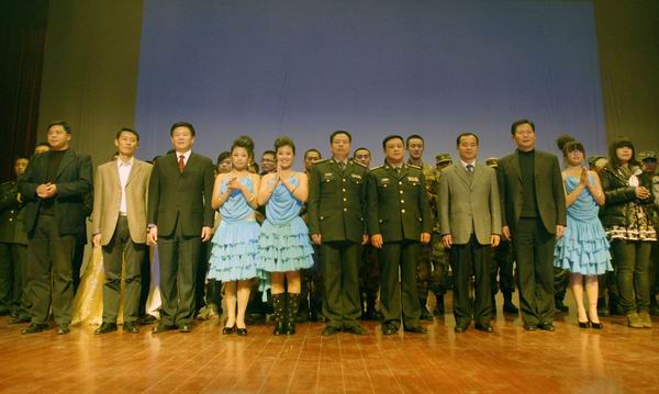 学校领导、部队首长与全体演员合影留念