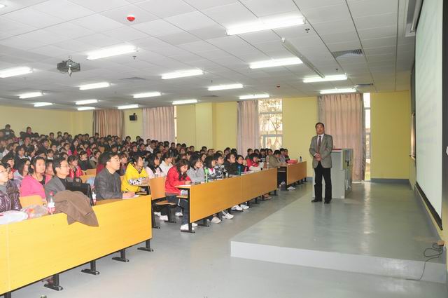 当日下午,中国神经生物学学会理事长、第二军医大学博士生导师路长林教授在109教室作了题为《神经科学研究进展》(Progress of Neuroscience)的学术报告,报告由院长白波主持。路长林以“21世纪已是生命科学的世纪”为线索,首先介绍了2007年、2008年、2009年世界生命科学的发展状况,主要包括:揭开人类基因组个体差异之谜,用皮肤细胞培育胚胎干细胞,揭开β2-肾上腺素受体神秘面纱,细胞重新编程技术等;评述了《科技综述杂志》评出的2010年十大科技进展;深入分析了“生命科学基础研究中最活跃的前沿函盖”、“神经科学是生命科学的重要支柱学科”等论题;阐释了神经科学研究的目的、意义及研究的重点与核心内容;突出介绍了中国神经科学研究现状和重要的神经科学问题研究进展等。