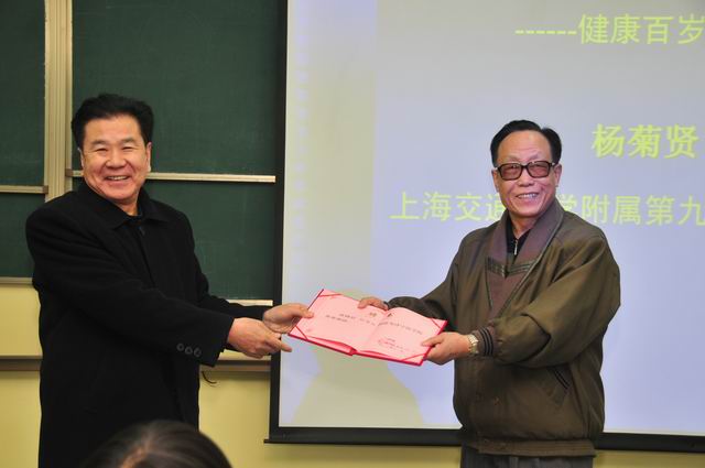 杨志寅副院长向杨菊贤教授颁发客座教授聘书