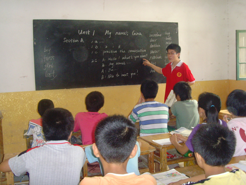 志愿者在驻地小学支教