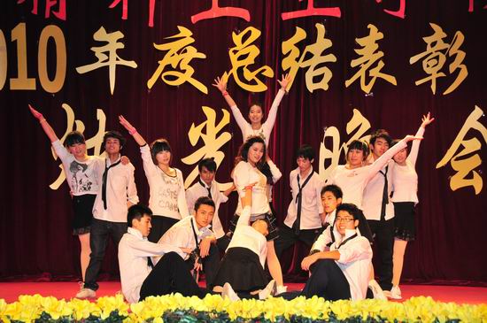 表彰大会结束之后,以参加学校首届集体舞大赛获得金奖的节目拉开了新年烛光晚会的序幕。晚会表演充满了激情,全体演职人员用他们炙热的情感、如火的激情打动了在场的每一位师生,整台晚会高潮迭起。晚会最后在大合唱《heal the world》中结束。