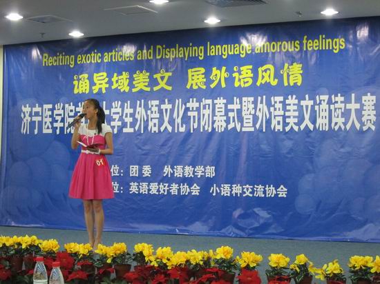 经过院系初赛、学校复赛,共有12名同学晋级外语美文诵读大赛决赛。他们诵读的题材广泛,内涵丰富,包括对生命的感悟、对母爱的歌颂、对保护水资源的呼吁等等,通过流利的口语表达、轻柔的背景音乐和生动的幻灯片演示,向现场观众呈现了一场异域美文盛宴,赢得现场领导老师和同学们的阵阵掌声。经过激烈角逐,来自临床学院的赵普远和韩雅文获得本次比赛的一等奖,公共卫生学院的刘国超等四名同学获得二等奖,精神卫生学院的朱涛等六名同学获得三等奖。