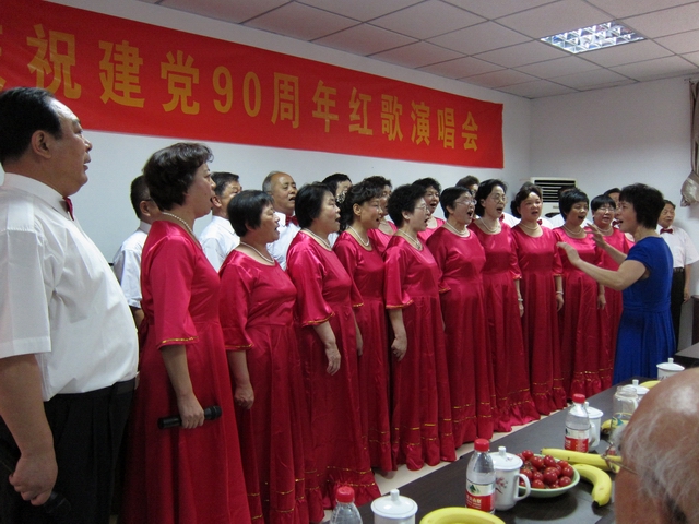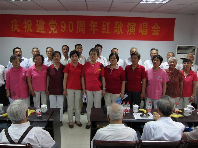 6月14日下午,离退休干部处在老干部活动中心举行庆祝中国共产党成立90周年“红歌献给党”演唱会。离退休老领导、老教授、老职工等100余人参加了演唱会。济宁市老年大学合唱团30名老同志前来参加了演唱会。