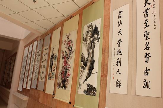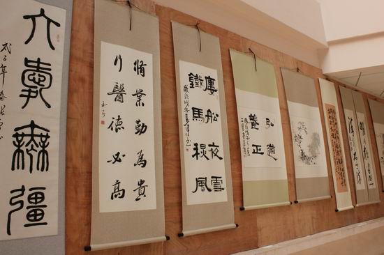 为庆祝中国共产党成立90周年,充分展现校园文化建设成果,七一前夕我校在南实验楼大厅举行了庆祝建党90周年师生书画展。学校党政领导武广华、白波、姜继玉、刘学景、杨志寅、高哲学、温杭东及各职能部门负责人和广大师生书法爱好者一同观看了展览。