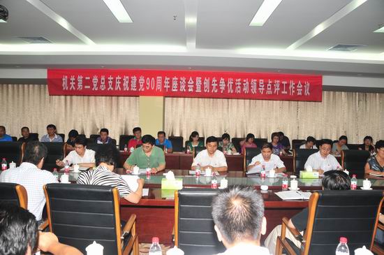 机关第二党总支书记靳广真就该总支开展庆祝建党90周年活动、党建工作和创先争优活动进行了汇报,各支部书记结合部门和岗位工作实际,就积极开展庆祝建党90周年和创先争优活动作了经验交流。