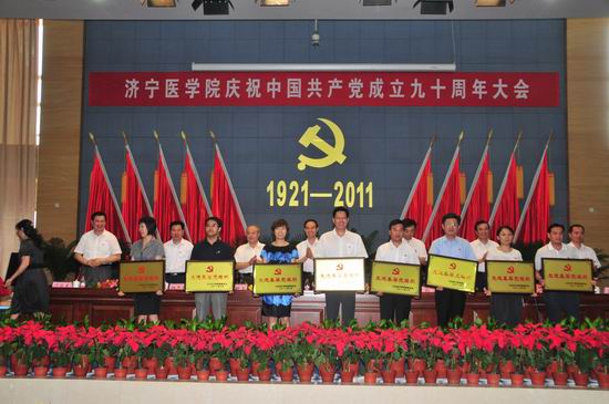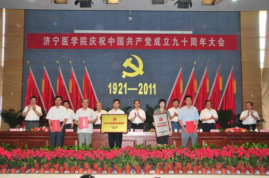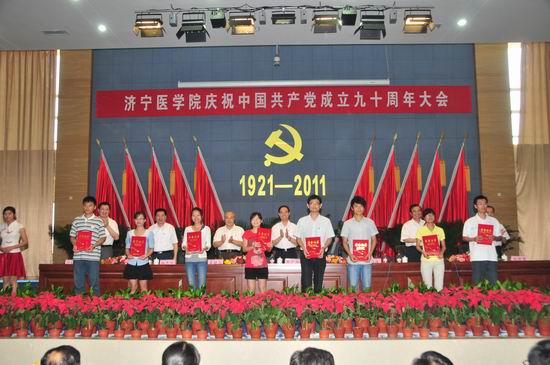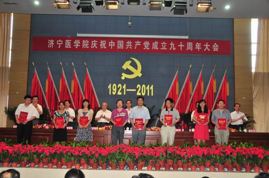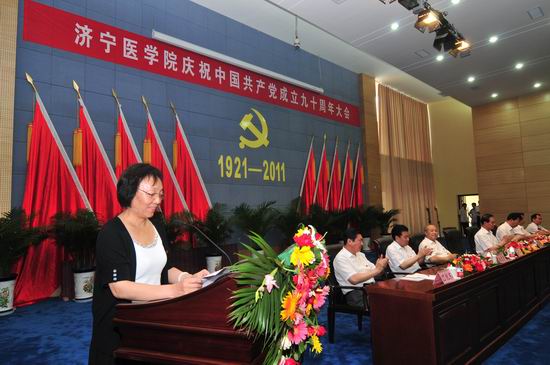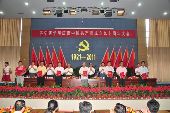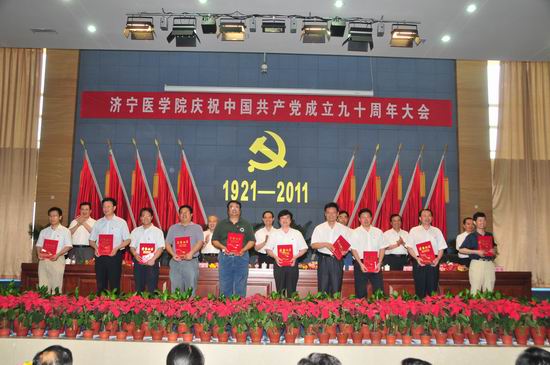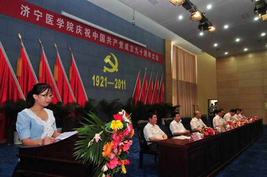 6月29日,我校在济宁校区隆重召开庆祝中国共产党成立九十周年大会。党委书记武广华出席会议并作重要讲话,党委副书记、院长白波主持会议,校领导姜继玉、刘学景、杨志寅、高哲学、温杭东出席会议,全校处、科级干部,教工党员,离退休干部党支部书记,附院领导班子成员和党总支书记,学生党员代表,受表彰的基层党组织代表和个人共500余人参加会议。