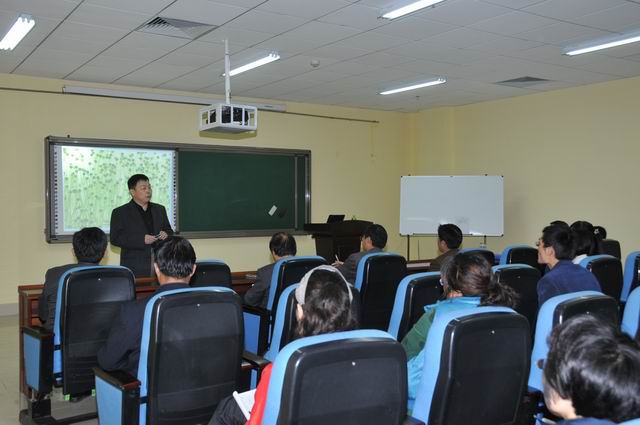 2011年11月3日下午,我校特聘教授,蒙特克里尔州立大学侯世峰博士在K307报告厅做了《生物纳米技术/纳米医学技术介绍和进展》的报告。各学院主要负责人、博士、在读研究生数十人参加了报告会。侯世峰博士就纳米技术的发展史、进展、应用方面做了详细的讲述,博得了听众的阵阵掌声。本次讲座提高了我校师生对纳米技术的认识和兴趣,对今后开展科研工作具有深远的促进意义。