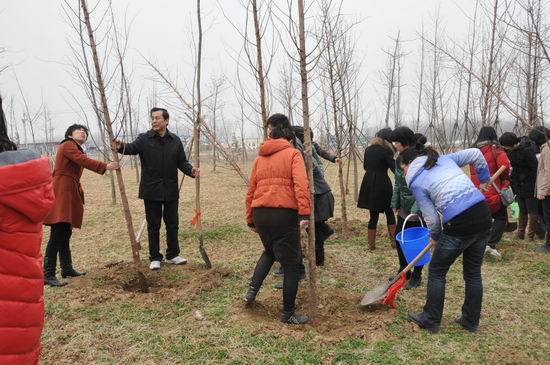 劳动现场,大家干劲十足,挥锹铲土、运苗栽苗、填坑培实、抬水浇水。呈现出一派热火朝天的忙碌景象。经过一个多小时的奋战,圆满完成植树任务,为美丽的北湖新校区又增添了一片绿色。