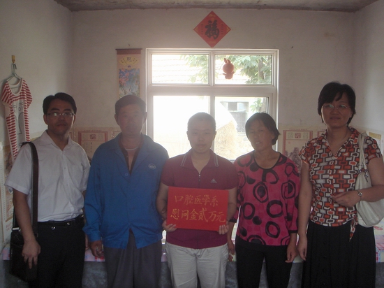 刘艳霞于今年四月份查出患脑胶质瘤,在北京301医院做了手术,手术费近八万元,后续化疗也要花很多钱,这对于一个困难的农村家庭来说无疑是一个天文数字。面对数额巨大的治疗费用,让本不富裕的家庭陷入了困境。为了能使这个面临重重困难的不幸家庭渡过难关,口腔医学系党支部在全系师生中发起了爱心救助捐款活动,并将此活动扩大到全校范围,累计捐款20115元,为正处于困难当中的刘艳霞一家伸出了援助之手,彰显了“一方有难,八方支援”的大爱精神。