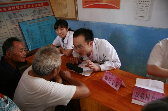 6月20号,学校组织附属医院内科、外科、妇科、儿科、眼科、耳鼻喉科、皮肤科等医疗专家,在学校党委组织部和附院办公室负责同志带领下,冒着酷暑,到学校负责帮扶的泗水县星村镇后河西村、张家庙村和后六安村,开展“送温暖 献爱心”大型义诊活动,并向群众免费赠送了价值4000元的常用药品。