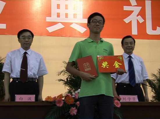 在主席台就座的领导向获得2012年省级优秀毕业生称号的毕业生代表颁发荣誉证书,向2012届毕业生代表颁发毕业证书和学位证书。校领导还向2012年志愿服务西部计划志愿者孟凡隆同学颁发了荣誉证书和奖金。