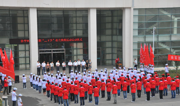仪式上,刘学景、赵敏向济宁校区重点服务团队授旗。志愿者代表孙琪同学发言。党委宣传部、学生工作处、教务处、团委等有关部门负责人,济宁校区各院系党总支负责人、团总支负责人,参加2012年暑期社会实践的重点服务团队带队教师及志愿者共计200余人参加启动仪式。