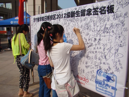 根据学校工作安排,9月9日是日照校区2012级新生入学报到的日子。校园中绿树红花掩映下的道路,被迎新横幅装扮得五彩缤纷。来自全国各地的千余名莘莘学子,在喜庆热烈的气氛中,来到济宁医学院日照校区,开启崭新的大学生活。