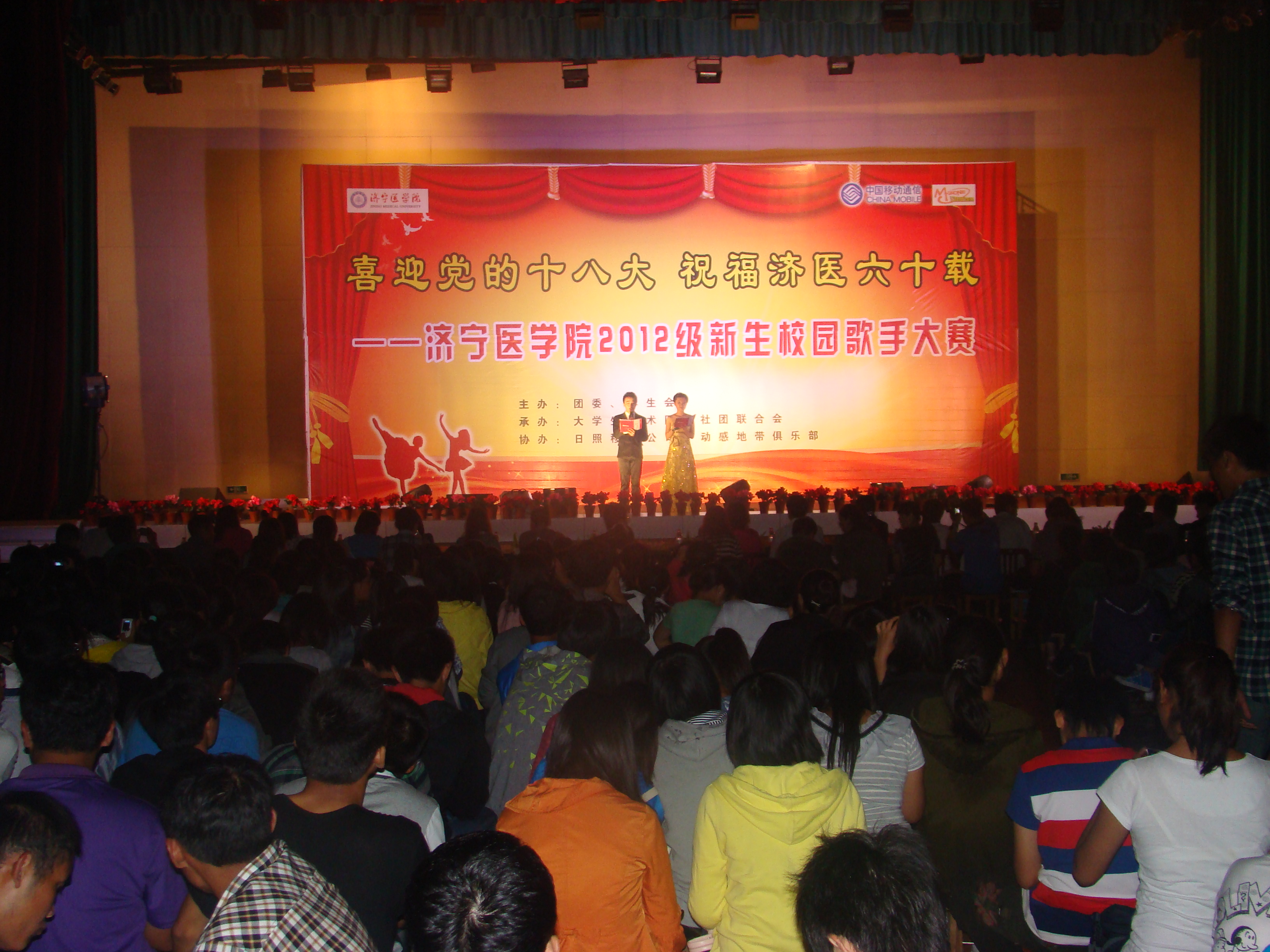 悠扬的乐律,放飞激昂的梦想;动听的歌声,演绎青春的飞扬。9月21日晚,由团委、学生会主办的“喜迎党的十八大、祝福济医六十载”——济宁医学院2012级新生校园歌手大赛决赛在日照校区文体馆举行。党委宣传部、团委以及日照校区各院系负责同志和日照校区2012级全体新生共同观看了比赛。