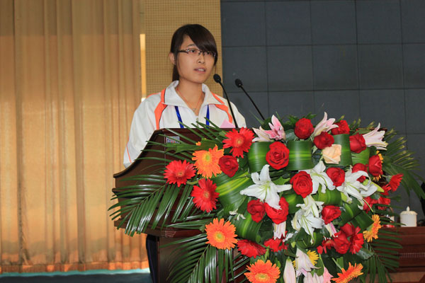 会上,孙琪同学代表校庆志愿者发言,表达了作为一名校庆志愿者骄傲与自豪以及做好校庆志愿服务工作的决心和信心。