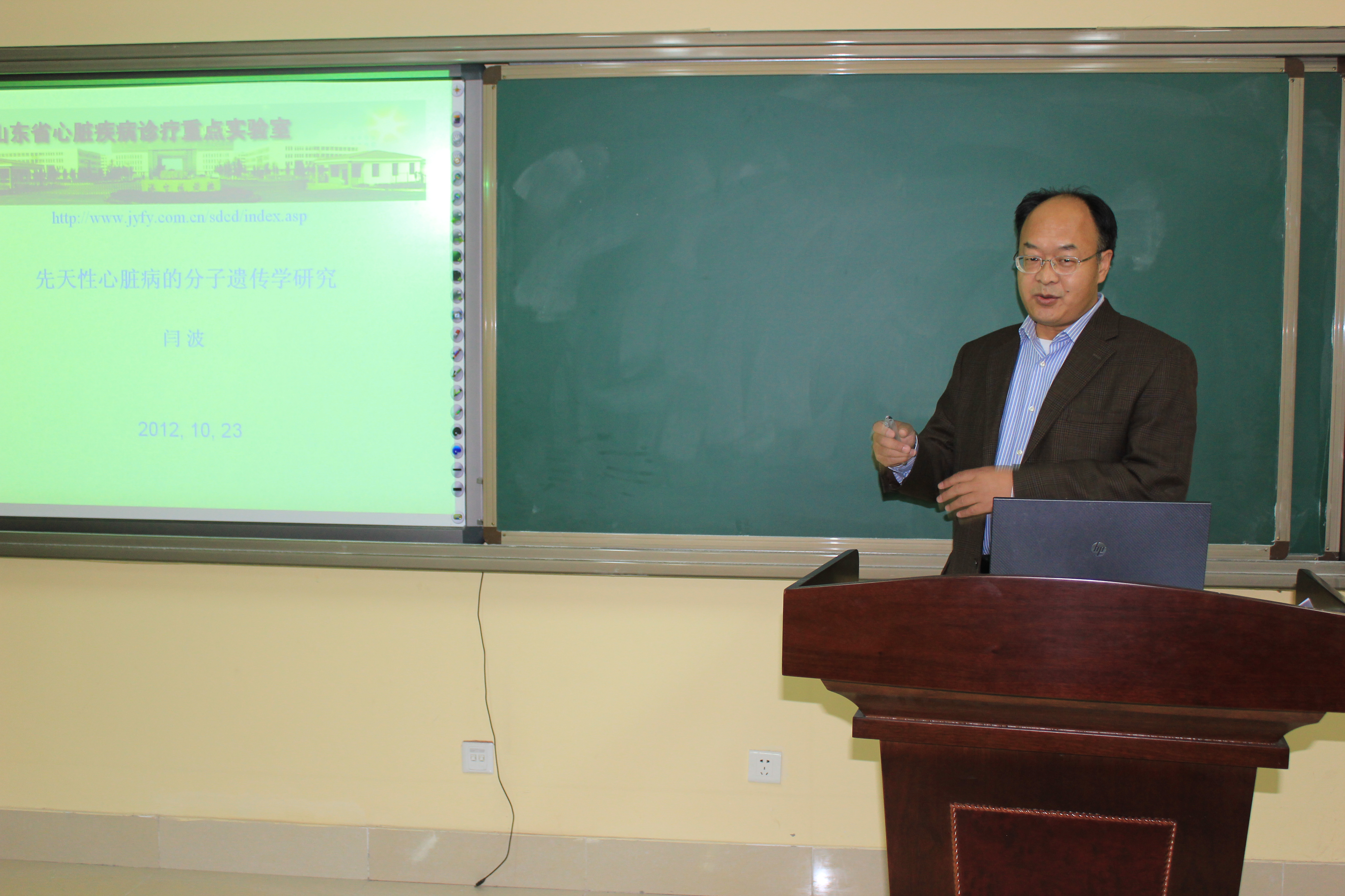 10月23日(星期二)下午15:30,山东省心脏疾病诊疗重点实验室主任、美国乔治华盛顿大学助理教授闫波博士在科研楼学术报告厅为我校师生作了一场题为《先天性心脏病的分子遗传学研究》的报告。