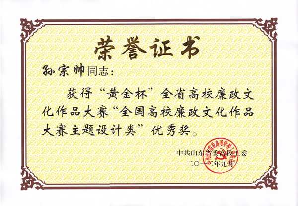 12月25日,中共山东省委高校工委在济南召开“黄金杯” 全省高校廉政文化作品大赛总结表彰大会,高校工委副书记黄琦、纪工委书记张圣中等领导出席会议并为获奖单位和个人颁奖。