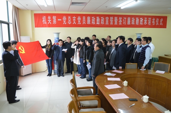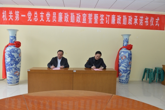 会上,机关第一党总支全体党员面向党旗进行了庄严的廉政勤政宣誓并现场签订了廉政勤政承诺书。