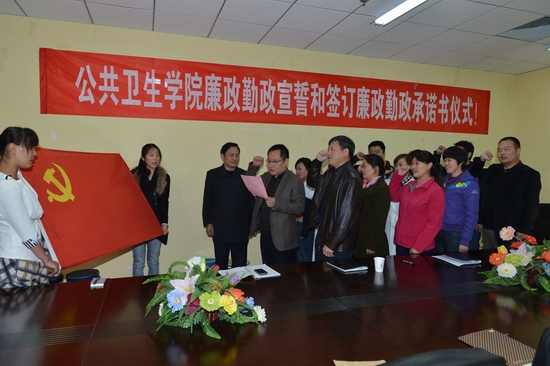 4月23日下午,公共卫生学院组织开展了廉政勤政宣誓和签订廉政勤政承诺书仪式活动。公共卫生学院党总支书记郑汝冰主持,学校纪委委员、宣传部(统战部)部长王传军参加活动并进行监督。