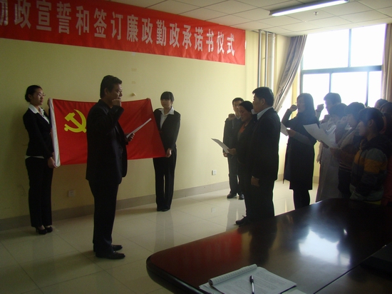 在费波的带领下,全体人员面向党旗进行了庄严的廉政勤政宣誓并现场签订了廉政勤政承诺书。