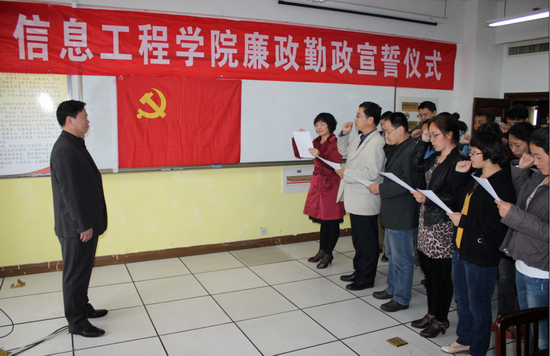 任淑敏传达了《中共济宁医学院委员会关于开展廉政勤政宣誓和签订廉政勤政承诺书活动的通知》文件精神,阐述了开展廉政勤政宣誓和签订廉政勤政承诺书活动的重要意义,要求全体党员严于律己,真抓实干,争做勤政廉政模范;要在学校党委与行政的正确领导下,乘学校第二次党代会胜利闭幕和60周年校庆成功举办的东风,紧紧围绕党代会提出的宏伟目标,以教学责任意识、学术研究意识、特色发展意识、团结协作意识、行为规范意识、安全保证意识,加强各项工作,团结一心,攻坚克难,为实现信息工程学院跨越发展,为把我校建设成为特色鲜明、国内知名的高等医科院校而努力奋斗。