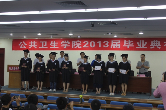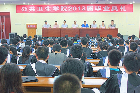 党委(学院)办公室主任王洪恩,教务处处长陈廷,学生工作处处长陈吉义,团委书记曲相艳,党委宣传部(统战部)副部长朱志忠,公共卫生学院学生管理科全体辅导员以及2013届全体毕业生参加了大会。