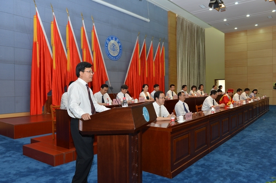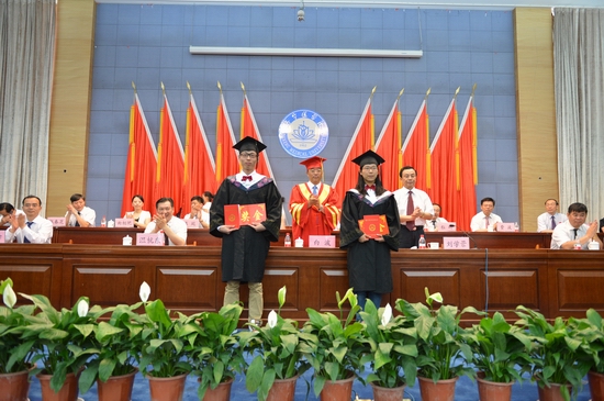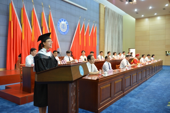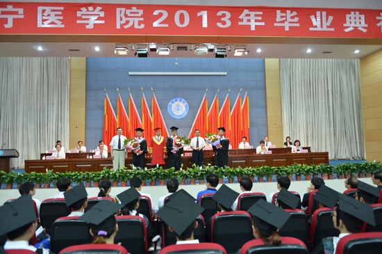 赵敏宣读了2013年省级优秀毕业生名单。主席台就坐的学校领导为2013年省级优秀毕业生颁发了荣誉证书,为毕业生代表颁发了学位证书和毕业证书,为2013年志愿服务西部的志愿者颁发证书、奖金,为光荣参军入伍的同学敬献鲜花。白波为2013届硕士学位毕业生和学士学位毕业生代表正冠、拨穗。临床学院张腾、科研处副处长