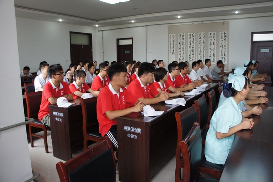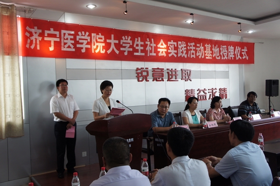赵敏简单介绍一下我校的整体情况,代表学校提了几点要求。一是加强交流,增进友谊。以建立社会实践活动基地为契机,加强联系,在条件允许的情况下,双方在医疗人才培养、医务人员培训等方面开展深入合作,努力将基地建设成为校地合作的典范。二是精心组织,保证质量。要长期保持与南张街道党工委、办事处及医院的联系,认真组织落实并开展好暑期“三下乡”社会实践活动,尽最大努力为任城区南张街道办事处提供较好的医疗保健等服务,认真总结活动经验,不断提升活动品位,确保活动质量。三是突出重点,讲求实效。要利用学校办学特色,切实为任城区的群众做一些实实在在的服务,尽量少给任城区和办事处的领导添麻烦,要立足特色项目,不断创新服务形式,充实服务内容,扎实开展活动,在实践中受教育、长才干、作贡献。