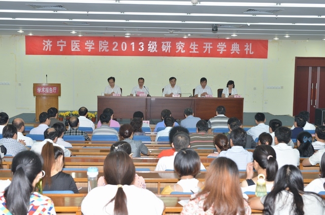 白波首先代表学校党委和行政对2013级研究生新同学表示热烈欢迎和祝贺。在简要介绍了济宁医学院的特色和优势后,白波要求研究生要掌握基本的专业知识、技能,将其运用于实践,并学会创造知识。他还对研究生新生提出了三个要求:一是勤奋,一个人成功有三个重要的条件——勤奋、天资、机遇,其中勤奋最重要,勤能补拙,可以弥补一个人天资的不足,勤奋还能创造机遇;二是敬业,只有敬业才能专业,敬业是必须的,专业是必备的;三是认真,人最怕“认真”二字,做人、做事、做学问都要认真踏实,来不得半点虚假。他特别强调只要你能够每天持续不断的努力,一天努力1%,一年就有(1+0.01)365=38 倍的提高;但只要你每天哪怕少努力1%,一年的成长就仅有(1-0.01)365=0.03倍,几乎为0。
