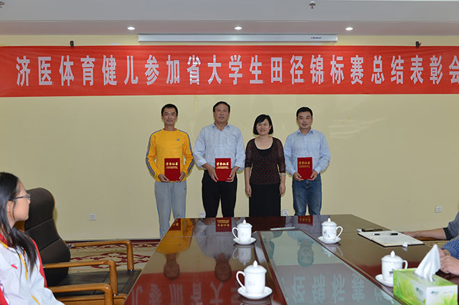 学校体委办公室主任、教务处处长陈廷宣读了学校表彰决定,体育教研室主任林家润向大会作了田径锦标赛工作汇报。教师代表孙毅和学生代表、2013年山东省大学生田径锦标赛女子乙组200米冠军李燕分别做了典型发言。对参加2013年山东省大学生田径锦标赛的领队林家润,教练员郗鹏、孙毅,运动员李燕、闫升焕、蔡晓宇、肖世康、刘四洋、王金梦进行了表彰。