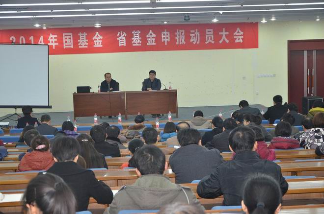 高哲学在动员会上讲话。他说,国基金和省基金是我国基础研究投入的主渠道,也是我校获取科技项目和科研经费的重要来源。为做好本次申报动员工作,第一,提高认识,认清形势;第二,鼓励广大教师树立信心,积极准备,精心选题,明晰思路;第三,进一步凝练学科研究方向,突出优势和特色,关注动态,潜心长期探索;第四,广开思路,加强联合;第五,注重青年人才的培养和引进;第六,抓好贯彻落实,浓厚科研氛围,加强科研交流。