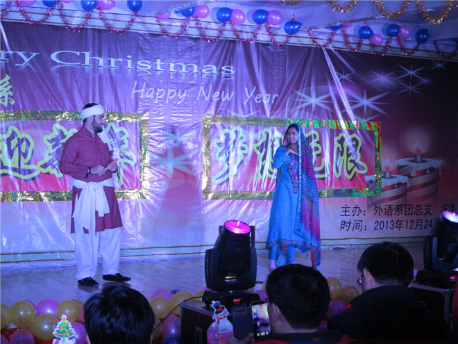 这是一场中西合璧的晚会,有留学生带来舒缓美妙的巴基斯坦舞蹈,有热烈奔放的非洲舞蹈,有正宗经典的RAP表演,有外语系老师的深情演唱,有动感劲爆的街舞,有高雅时尚的走秀,有笑料百出的小品,有精彩神秘的魔术,有创意激情的乐队……无不展示了我校学生的青春活力和无限梦想。晚会不仅凝聚了外语系师生的力量,而且增强了留学生的归属感。晚会在小合唱《明天会更好》的歌声中结束,表达了大家对新的一年祝福和期待,也表达了对济宁医学院美好明天的祝愿。