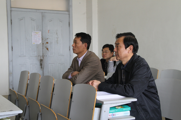 课堂上,刘学景与同学们一起认真听课,对教师授课情况和学生听课状态一一进行了认真观察和记录。任课教师讲解条理清楚,重点明确突出,学生精神饱满,师生互动密切,课堂气氛活跃。课后,刘学景同授课老师进行了亲切交流,对于教学设计、课堂氛围、教学秩序、学生表现等环节予以肯定和赞扬,他强调任课教师讲课应当注重深入浅出,由灌输型向思考型转化,理论教学与实践活动相结合,引导同学们主动思考、主动实践,提高学生的动手能力。