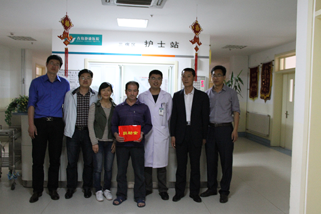 5月22日,药学院党总支书记宋军、副书记秦峰及辅导员老师奔赴青岛静康中医肾病医院将一笔饱含爱心的捐助金送到了杨常碧同学母亲的病房。