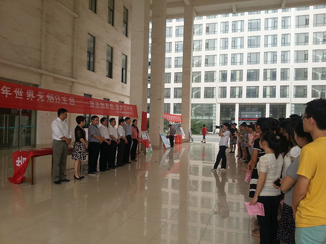 济宁市疾病预防控制中心工会主席高中静在与大学生交流时讲到,行为和生活方式是影响人类健康的主要因素,健康知识的普及是改变不良行为和生活方式的主要措施之一,要正确认识到吸烟是一种疾病而不仅仅是一种习惯,作为一名未来从事公共卫生事业工作的大学生,应有义务宣传和传递“倡导无烟环境从我做起,从小事做起,小改变、大不同”的控烟理念,以激发公众创建和维护无烟环境责任意识。公共卫生学院学生会主席赵猛代表全体同学发出倡议:自己不吸烟并劝阻他人吸烟,共创无烟校园,为创造一个文明、优美、和谐的校园环境贡献力量!