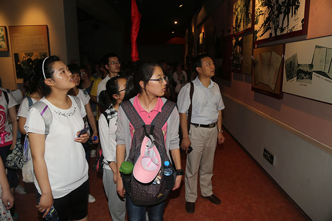 跨过山顶,师生们到达鲁西南战役纪念馆。鲁西南战役纪念馆是为纪念鲁西南战役中牺牲的革命先烈而修建。羊山战役从一九四七年七月十四日到二十八日,经过15天的浴血奋战,全歼国民党整编六十六师共计23000人,俘虏中将师长宋瑞珂、少将参谋长郭雨林等高级将领。我军前后经过一个月的艰苦作战,共歼敌56000人,结束了整个鲁西南战役,揭开了中国人民解放军从战略防御入战略进攻的序幕。纪念馆内陈列着一些鲜为人知的珍贵历史照片、电文、书信和实物等,其中有毛主席给刘、邓首长的亲笔信;有当时晋冀鲁豫野战军司令部发布的“渡河命令”电文;有我军挺进大别山途中的照片。在场馆内,师生们真切感受了鲁西南战斗的激烈、残酷,解放战争的胜利是牺牲了无数的战士换来的。深深为解我军民视死如归的革命英雄气概所震撼。还理性地认识到战争胜负是由敌对双方政治、经济、军事、自然地理和主观指导能力等综合因素影响的,每个因素都不可忽略。