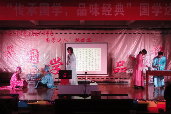 为深入贯彻学习习近平总书记系列重要讲话精神,激励青年学生继承和弘扬中华优秀传统文化,切实践行社会主义核心价值观,6月2日晚,由校团委主办、药学院承办的“传承国学,品味经典”国学达人挑战赛在日照校区一楼多功能厅举行。日照校区300余名师生观看了本次比赛。