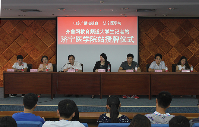 本报讯 6月6日下午,齐鲁网教育频道大学生生记者站济宁医学院站正式授牌成立。济宁医学院党委宣传(统战)部部长王传军和齐鲁网教育频道主编董燕共同为齐鲁网教育频道大学生记者站济宁医学院站授牌。