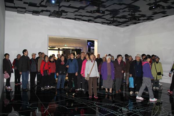 在展馆解说员的带领下,老同志们依次了解了济宁风光、人文、历史和产业布局、城市规划等方面的内容。展馆的模型陈列、多媒体演示、查询屏、幻影成像、全息投影、电子翻书等高科技手法,深深地吸引着大家。尤其是3D弧幕影院,不仅让人身临其境的观看大运河、竹竿巷、环城河等水系景色,而且还能体验到各个县市的文化特色建筑,身处建筑峰端、享受不同的感官刺激。丰富精彩的画面给人以前所未有的视觉享受,让人目睹济宁城市的变迁与发展。老同志们在参观过程中,回首往昔,展望未来,对现今高科技技术的突飞猛进和济宁市日新月异的发展赞不绝口。